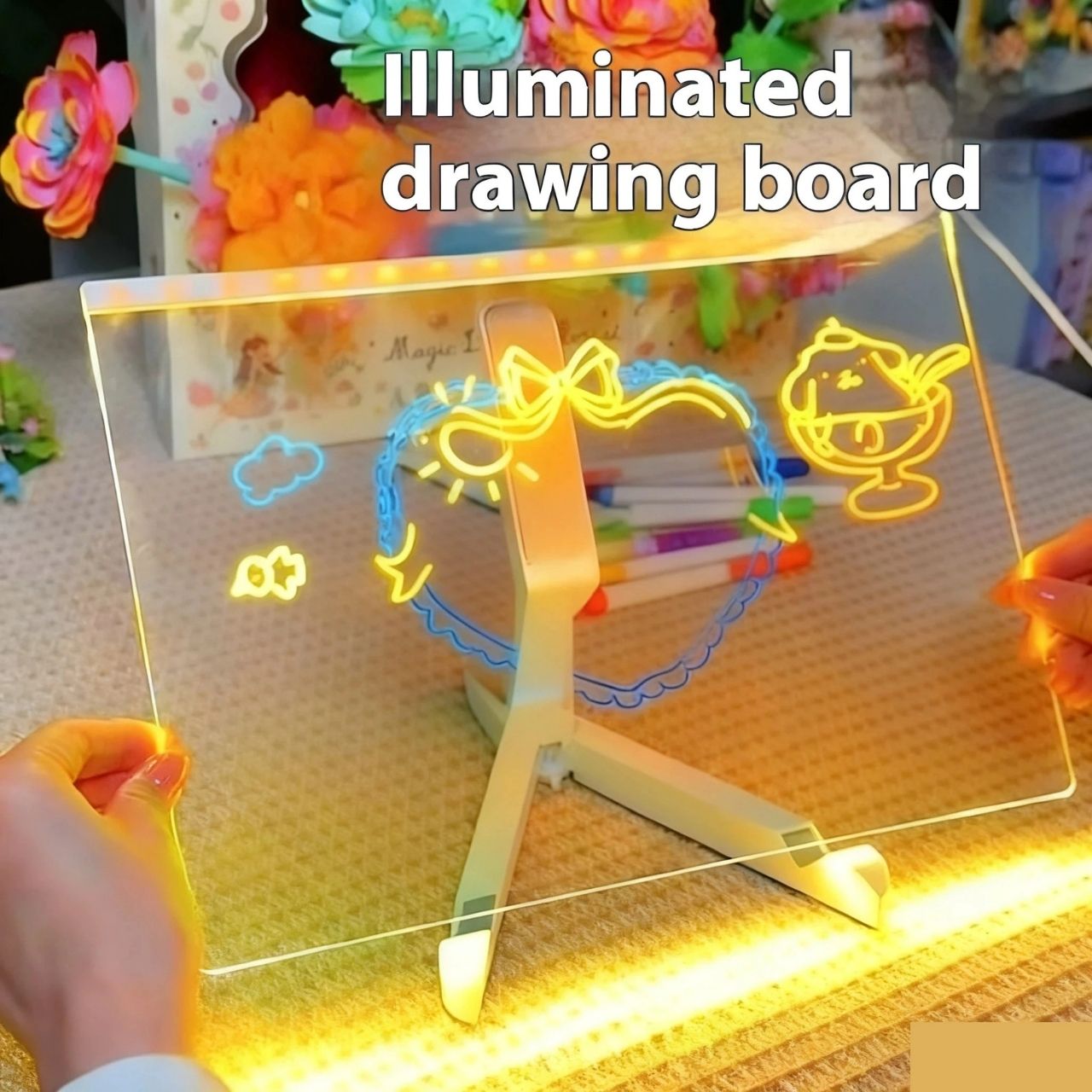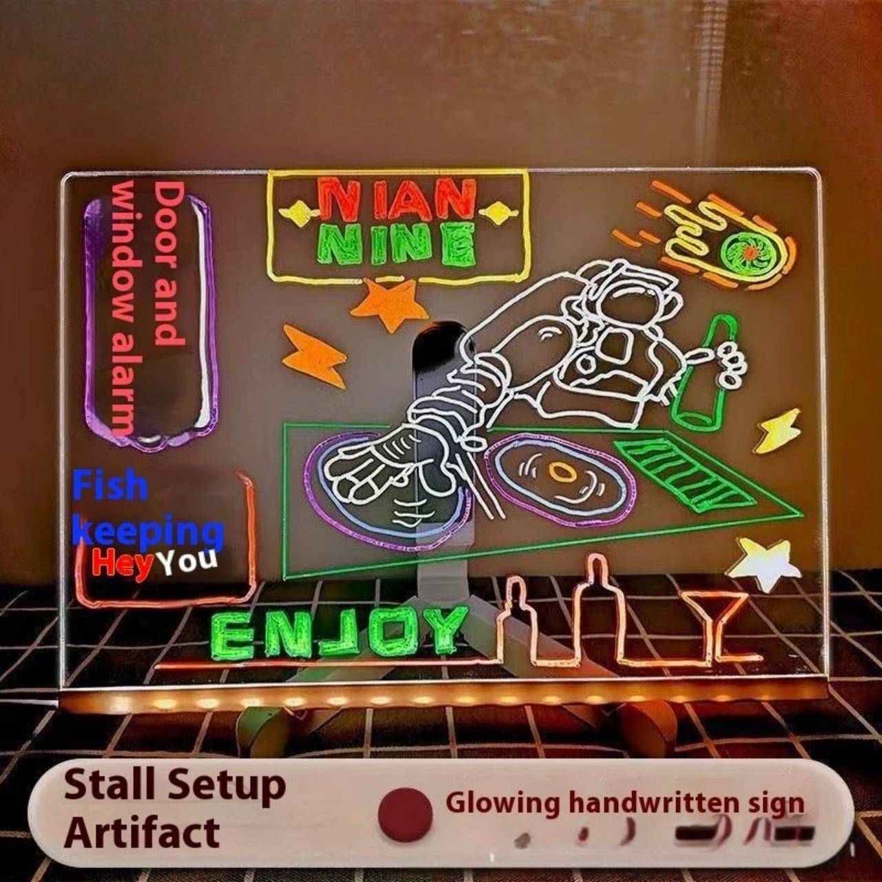 1x LED tāfele, 7x krāsains marķieris, 1x USB kabelis, 1x turētājs