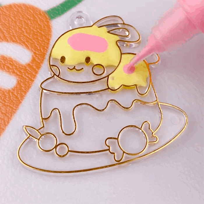 Uzklājiet krāsu uz nodrošinātā motīva. Ļaujiet krāsai dabiski nožūt. Rotaslietā ir caurums augšpusē, kur var ievilkšķināt auklu vai metāla rotaslietu. Ja vēlaties, varat pievienot perles un dimantus rotaslietai.