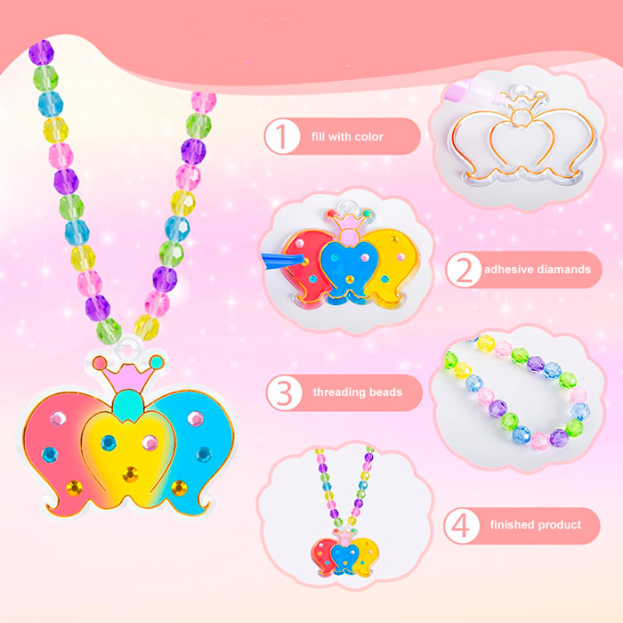 Šajā bagātajā rotaslietu komplektā ir 6 dizaini, 6 dažādas krāsas, 6 rotaslietu ķēdes, 1 pincete, 1 dimantu komplekts, 1 krāsaino perlu komplekts un 1 garāka aukla!