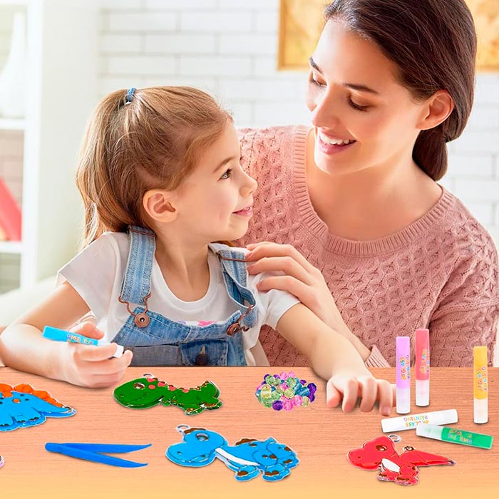 Šis bagātīgais kulonu komplekts satur 6 dizainus, 6 dažādas krāsas, 6 kulonu ķēdes, 1 pinceti, 1 iepakojumu ar dimantiem, 1 iepakojumu ar krāsainām pērlītēm un 1 garāku auklu!