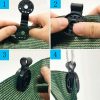 • Saspraudes ir piemērotas tikai tīkla audumam. Ieduriet virvi klipsī. Ievietojiet tīklu klipsī<span style="background-color: transparent; color: inherit; font-size: 1rem;">(starp abām kārtām) un cieši saspiediet, lai tīkls noturētos vietā.</span>