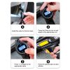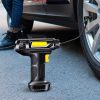 Vienkārši pievienojiet kabeli automašīnā, nospiediet pogu un ļaujiet ierīcei veikt savu darbu. Atlaidiet pogu, kad riepas ir piepumpētas. Digitālais displejs parāda riepu spiedienu.