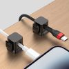 Ierīci var pielīmēt pie jebkuras plakanas virsmas, izmantojot pašlīmējošo dizainu: koks, stikls, metāls, plastmasa, āda, flīzes, utt. Ievietojiet vadu spraudnē vai caurumā. Piemērots dažādiem mērķiem: peles vads, austiņu vads, lādētāja vads, strāvas vads, utt. Piemērots vadiem ar aptuvenu diametru 6,5 mm. Lai uzstādītu vadu, nospiediet augšējo daļu, lai atvērtu caurumu, ievietojiet vadu iekšā un aizveriet to.