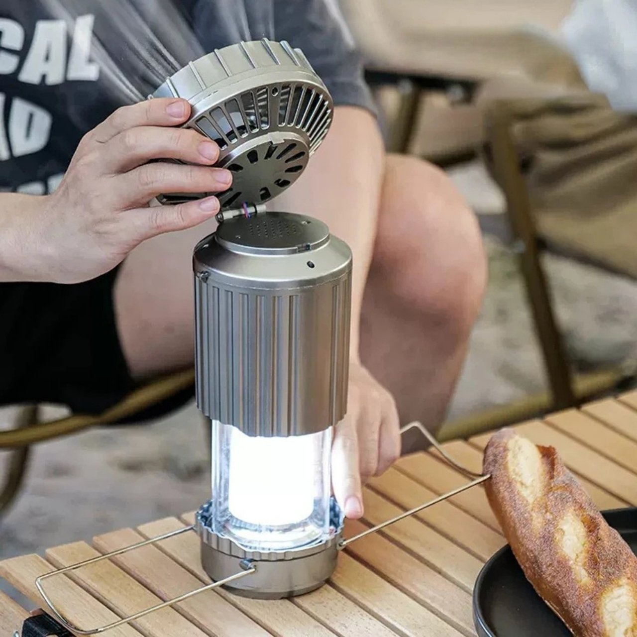 Ideāla kempinga ierīce! Tā lieliski apgaismo, ventilators ir kluss un jaudīgs, un es varu uzlādēt savu telefonu.