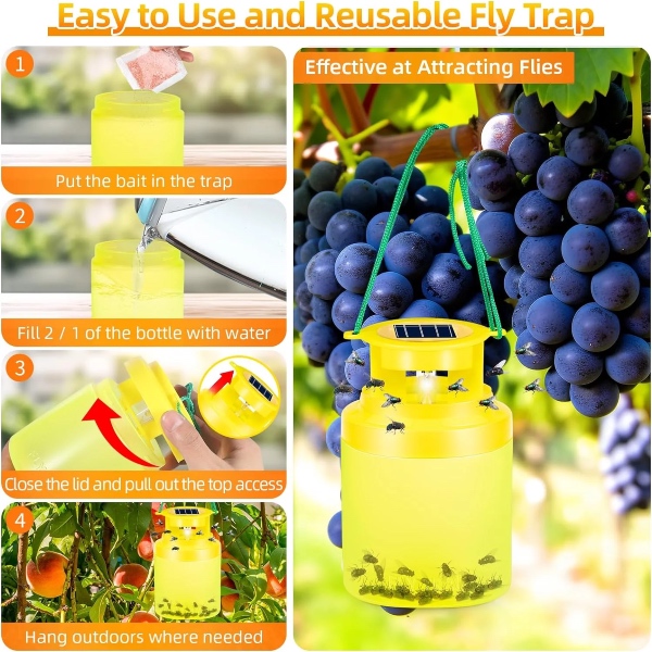 Vienkārši pievienojiet ēsmu un ūdeni un pakariet slazdu ārā. Efektīvs un ilgstošs risinājums visām sezonām.