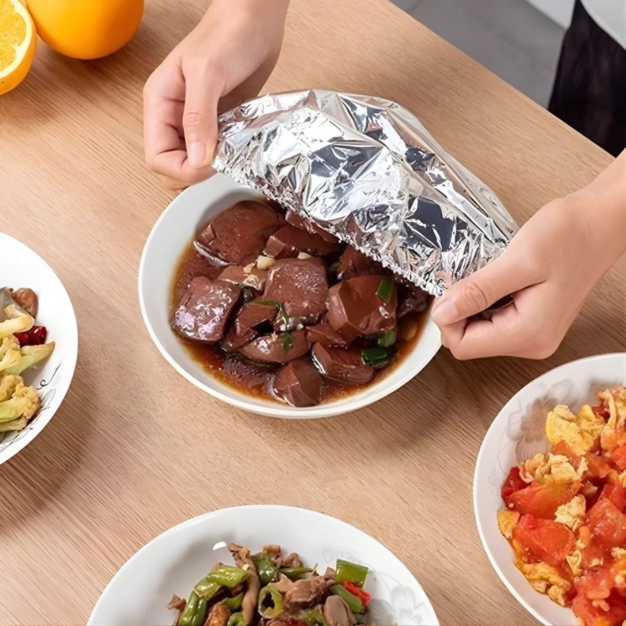 Ēdiens ātri atdziest, un līdz ar to arī ēšanas prieks. FoilCovers rada aizsargslāni, kas notver siltumu un novirza to atpakaļ uz ēdiena virsmu, tādējādi tas ilgāk paliek karsts un svaigs. Tādējādi zupas, mērces vai cepti ēdieni var mierīgi atpūsties, neuztraucoties par siltuma zudumu starplaikā.