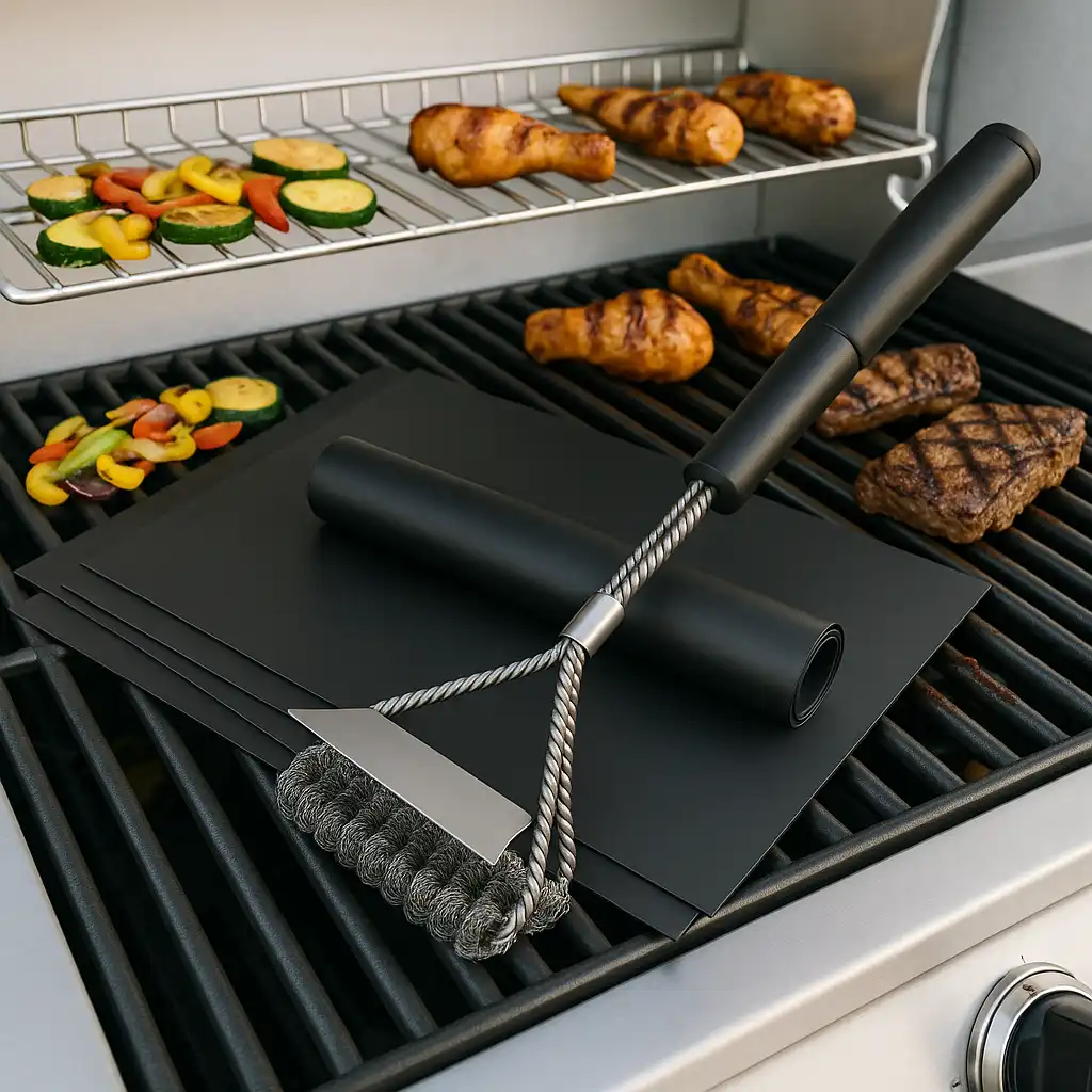 Birste ir piemērota visu veidu grilu un restu tīrīšanai. Pirms uzglabāšanas notīriet un nosusiniet birsti. Nelietojiet uz auksta grila – tā ir visefektīvākā uz silta vai karsta režģa. Paklāji ir piemēroti elektriskiem, gāzes, infrasarkanajiem, ogļu, brikešu vai malkas griliem. Tie ir ārkārtīgi izturīgi, var izturēt temperatūru līdz 650°C un ir sertificēti kā pilnīgi veselībai draudzīgi. Jūs varat gatavot gaļu, zivis, dārzeņus, iesmiņus, kapučīno, olas vai pat pankūkas! Un pēc lietošanas pamatne ietaupa jūs no kaitinošā grila tīrīšanas darba. Vienkārši noņemiet un nomazgājiet grila oderējumu, un tas ir gatavs nākamajam piknikam.