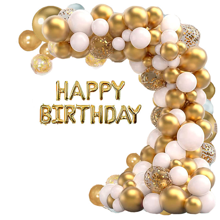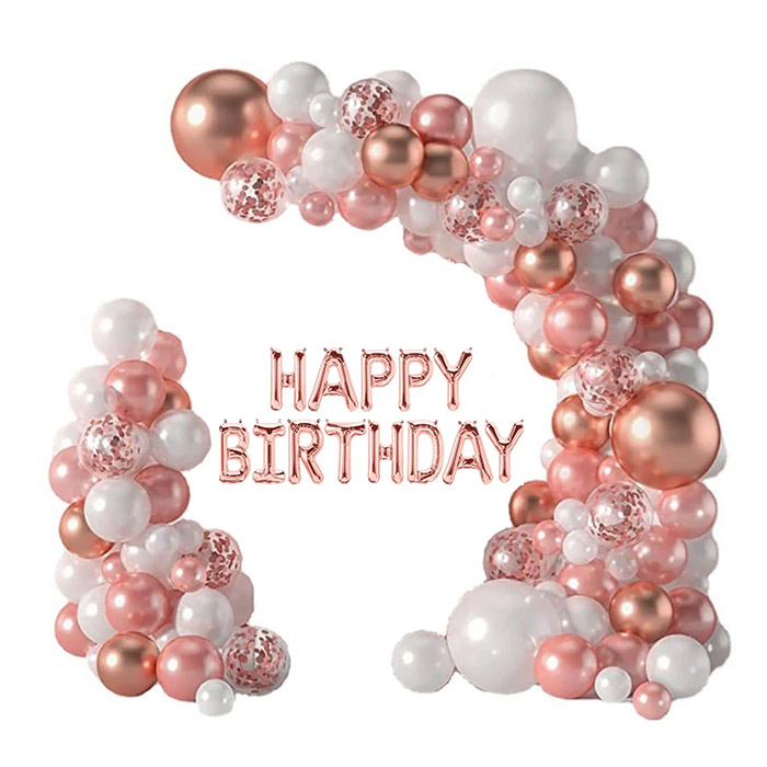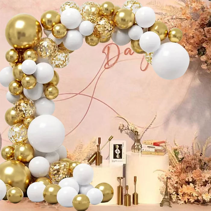 Komplektā ietilpst 123 gabalu balonu komplekts dažādos izmēros un formās, kā arī piederumi to izvietošanai arkā!