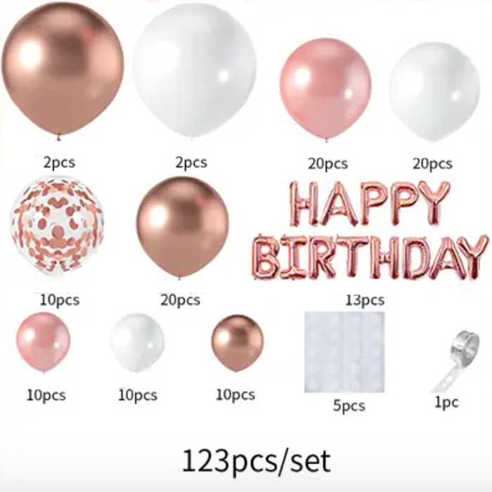 HappyBday, 123 gabalu balonu komplekts