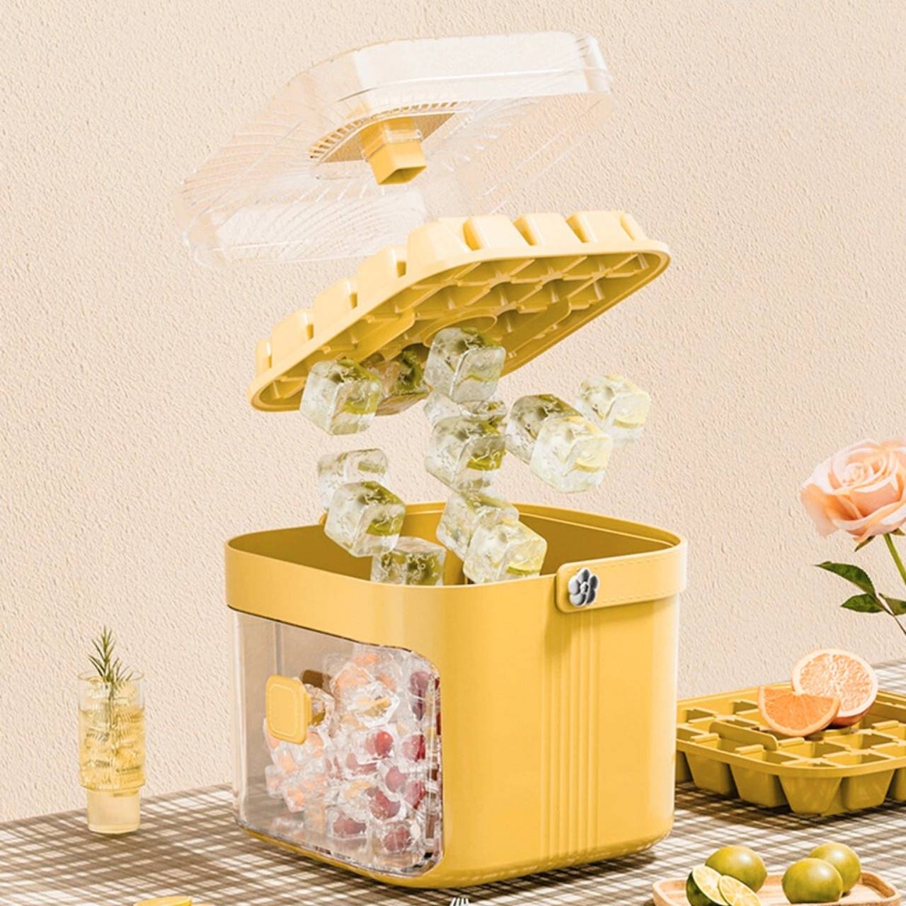 Ielejiet ūdeni traukā un aizveriet vāku. Novietojiet saldētavā pietiekami ilgi, lai veidotos ledus. Kad tas ir sasalis, nospiediet pogu augšpusē, un ledus kubi izlaidīsies traukā apakšā. Neizstādiet tiešā siltumā. Pirms pirmās lietošanas ieteicams iztīrīt.