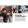Inovatīvajam lietussargam ir C veida rokturis, kas ļauj to novietot uz plaukstas locītavas un abas rokas turēt brīvas!