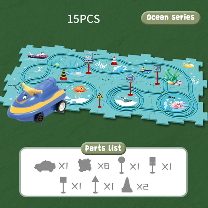 RailRoad 15 gabalu komplekts ar 1 transportlīdzekli