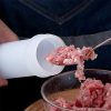 Aizpildiet cauruli ar gaļu vai pildījumu un vienkārši spiediet ar spiediena rokturi.