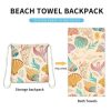 Pludmales vai baseina dvielis, kas pārvēršas praktiskā mugursomā. Vienkārši salieciet dvieli savā mugursomā. Izklātā veidā tā izmērs ir apmēram 70 x 140 cm un to izmanto kā dvieli, bet salocītā veidā tā aizņem tikai apmēram 40 x 40 cm un kalpo arī kā mugursoma.