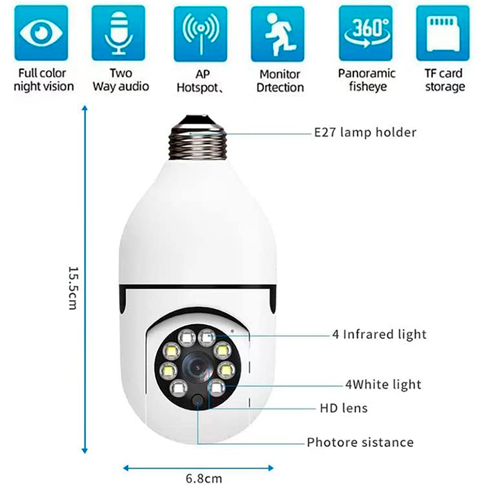 1x spuldzes formas drošības kamera